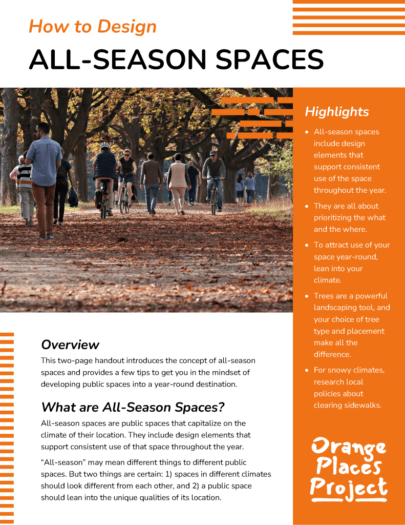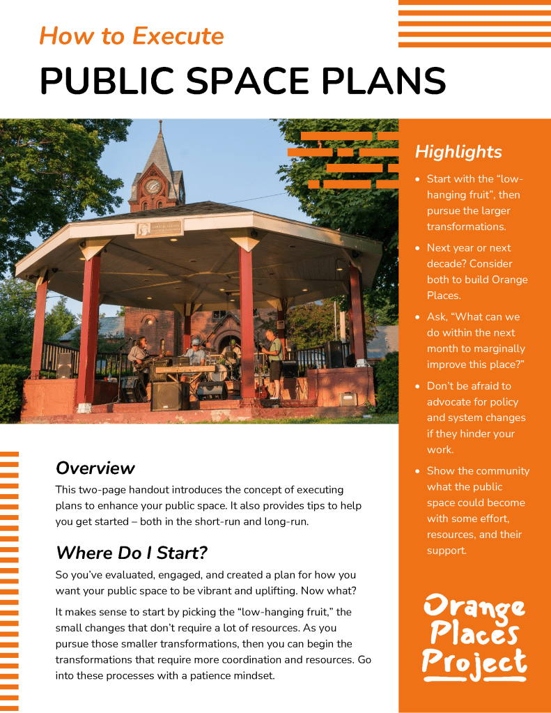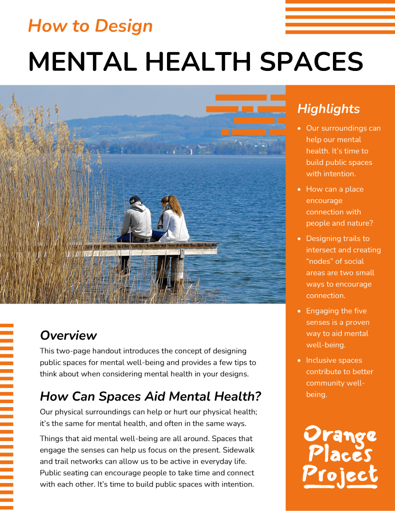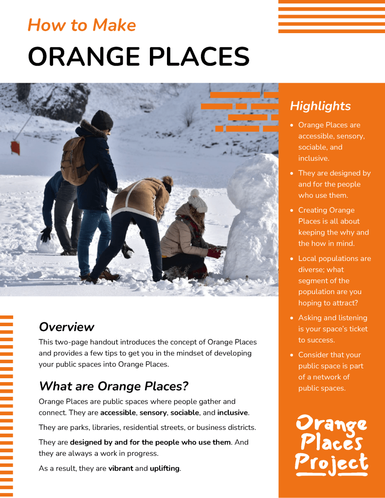 A little inspiration can go a long way! Find some tip sheets about transforming your public spaces into Orange Places with the resources below.